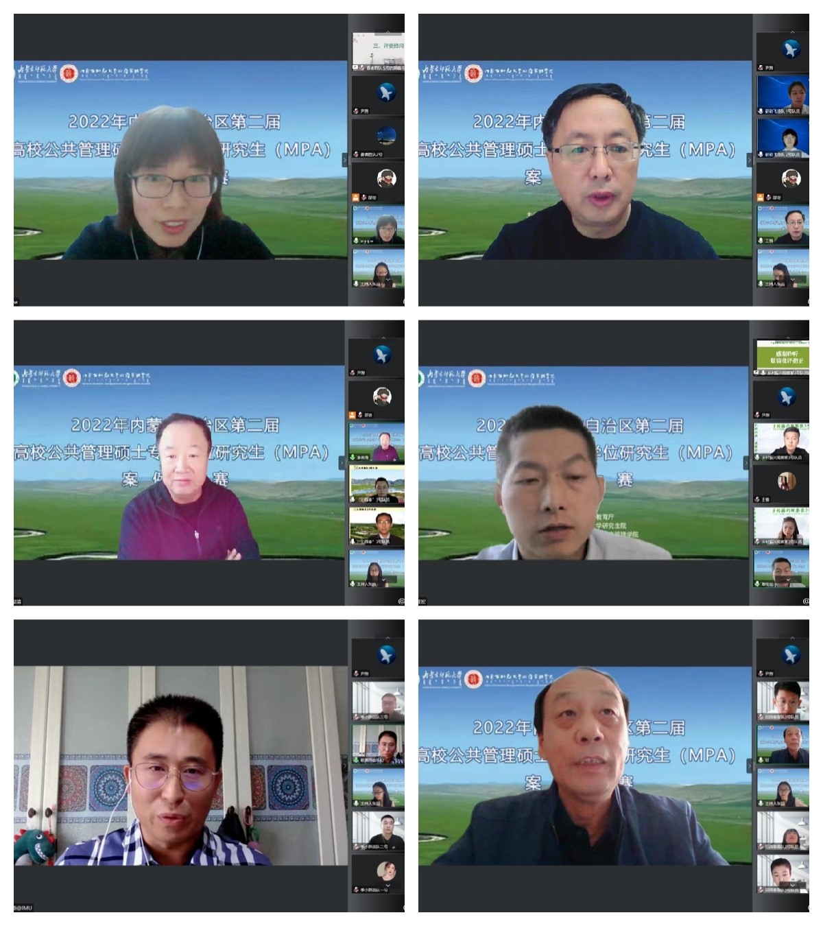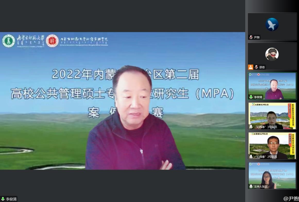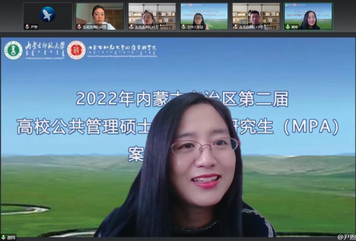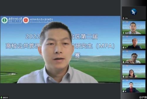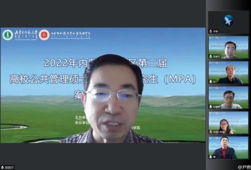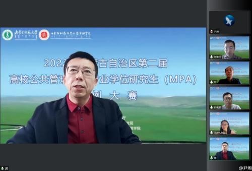 10月9日,由自治区教育厅主办、我校研究生院和政府管理学院承办的内蒙古自治区第二届高校公共管理硕士(MPA)专业学位研究生案例大赛以线上方式举行。本次案例大赛经各高校的初赛选拔,共计9支队伍进入自治区决赛,中央民族大学国家安全研究执行院长、博士生导师李俊清教授、全国MPA教指委秘书处办公室主任谢佳宏老师、华东师范大学公共管理学院MPA中心主任谢炜教授、内蒙古大学公共管理学院院长、博士生导师白维军教授、内蒙古民族大学管理学院院长王强教授、内蒙古农业大学人文社会科学学院行政管理系主任乌云高娃副教授、永利官网政府管理学院甘月文研究员等7位专家担任本次比赛评委。内蒙古各MPA培养院校参赛队员、指导教师及在读MPA研究生共计80余人参加并观摩了此次比赛。