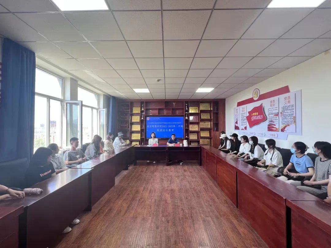 为了加强学生校园安全防范意识,保障学生在校安全,2023年6月6日,我院于学生事务中心和学院楼同步开展了“学习贯彻习近平新时代中国特色社会主义思想主题教育—政府管理学院2022-2023第二学期校园安全教育”主题讲座。
