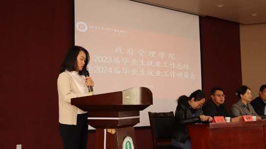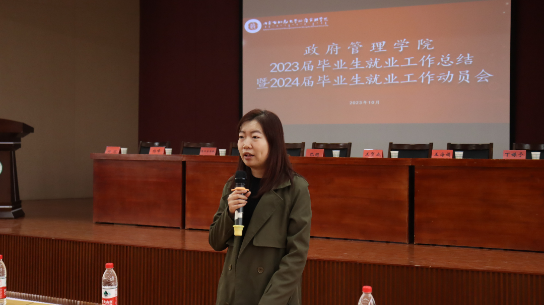 为了推进2024届毕业生就业指导与服务工作,帮助毕业生了解就业形势,把握就业机会,做好就业规划并拓宽毕业生就业渠道,政府管理学院于10月26日下午在科技楼报告厅开展2023届毕业生就业工作总结暨2024届毕业生就业工作动员会。政府管理学院党委书记巴图、政府管理学院院长王永明、政府管理学院党委副书记、副院长乌日古木拉、招生就业处职业发展指导中心主任王贺成、公共事业管理系主任杨峰、行政管理系主任王海娟、政治学与行政学系主任邱环、学生工作与就业办公室主任王洁琼、团总支副书记丁姝予、辅导员娜娜等教师以及毕业班本科生、研究生同学出席本次会议。