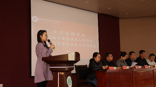 会议上,政府管理学院党委副书记、副院长乌日古木拉对我院2023届毕业生就业工作进行了总结。政府管理学院院长王永明部署2024届毕业生就业工作并强调了要强化校友资源发挥,努力拓展就业,主动向校友所在事业单位、企业推荐优秀毕业生,不断拓宽校园招聘渠道并且夯实就业工作机制,提升就业服务质量,实行一生一策制度。王贺成老师做出政策解读,并提出毕业生要明确主要工作去向,了解更多就业项目,做好毕业季求职准备并完善好就业权益的保障,并对毕业生进行了面试等求职工作的指导与规划。李静芳老师为2024届毕业生做出就业规划建议,2020级政治学与行政学班寇雅娟同学作为优秀学生代表讲话。