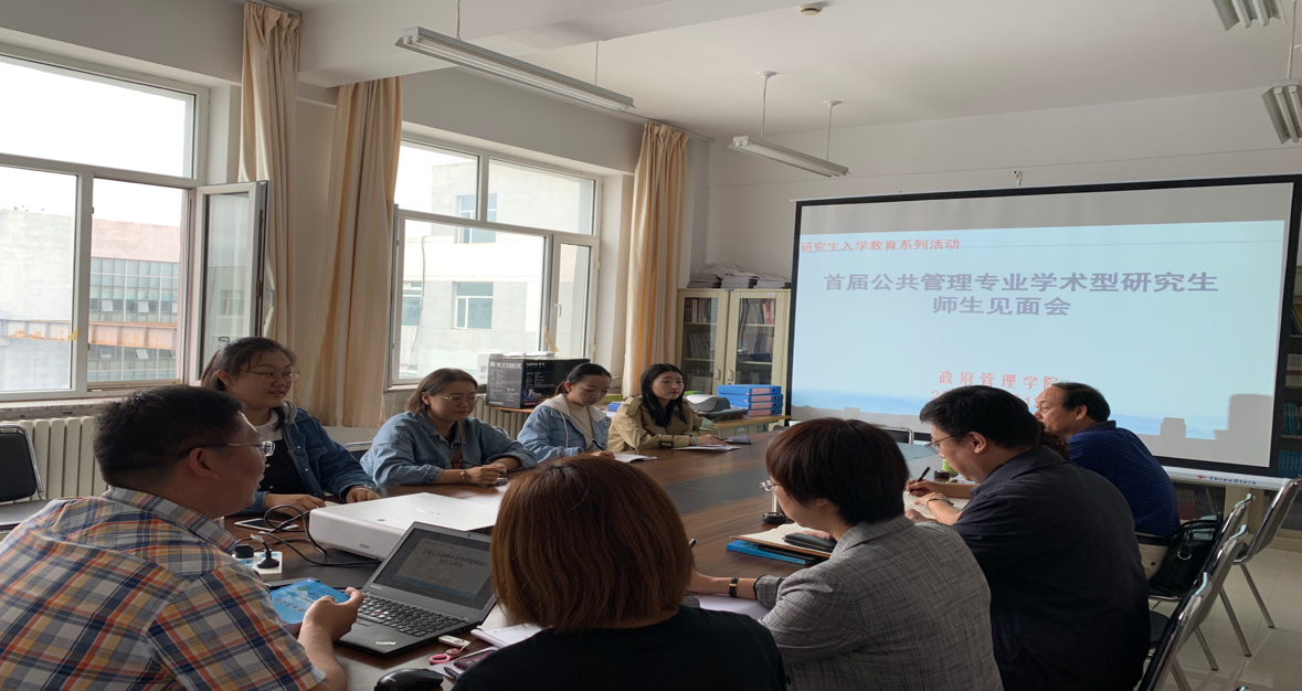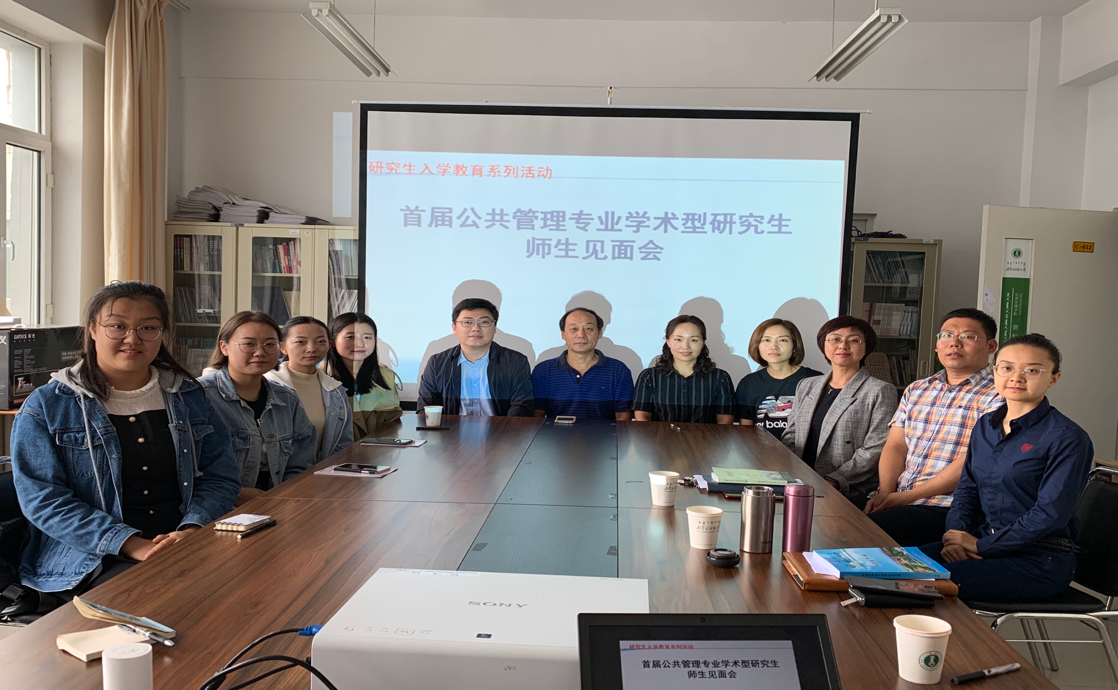 9月12日,政府管理学院举行首届公共管理专业学术型研究生师生见面会,政府管理学院院长拓俊杰,党总支副书记乌日古木拉,公共管理硕士学位点主任甘月文,硕士研究生导师王永明,董晔璐,王海娟,研究生辅导员丁姝予以及四位研究生参加了此次会议。