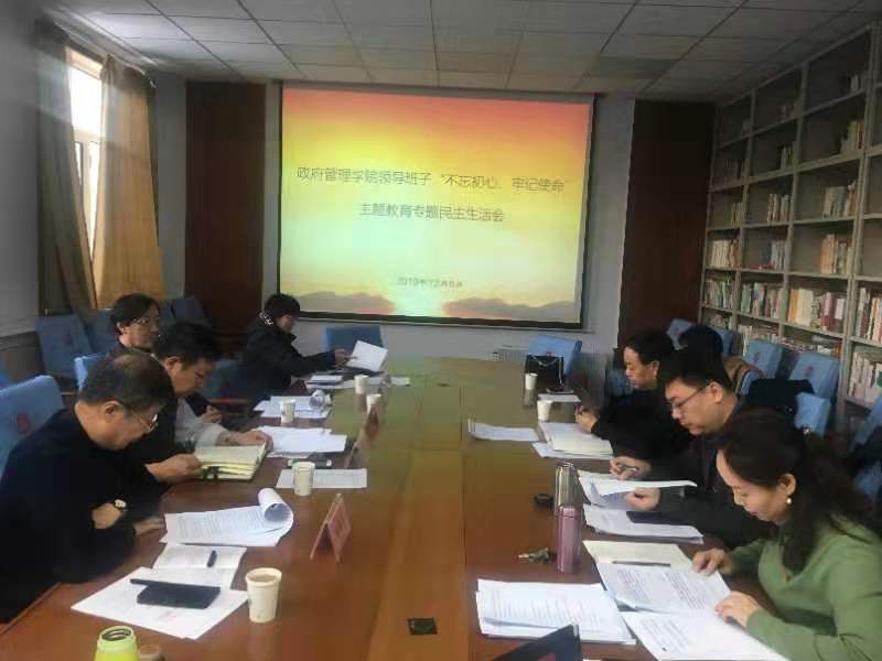 12月6日15时30分,政府管理学院党总支在文史楼资料室召开处级领导干部“不忘初心、牢记使命”主题教育专题民主生活会,政管院班子成员参加会议,非党员班子成员、学院环节干部及非党员代表列席会议,副校长王来喜、校党委第三指导组石晶瑜、王瑞昌、刘新春到会指导。会议由政管院党总支书记樊荣忠主持。