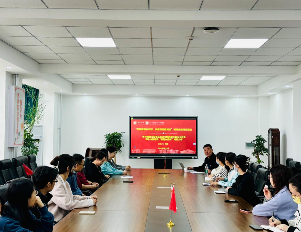 为深入学习贯彻党的二十大精神和习近平总书记对内蒙古的重要指示精神,聚焦铸牢中华民族共同体意识,深刻领悟习近平新时代中国特色社会主义思想,教育引导广大党员坚定不移感党恩、听党话、跟党走,2024年3月23日上午,政府管理学院党委组织开展了“学懂弄通六句话,矢志不渝跟党走”系列主题党日活动,我院党委书记巴图同志以“学习领悟习近平总书记交给内蒙古的五大任务和全方位建设“模范自治区”两件大事”为主题讲授专题党课。