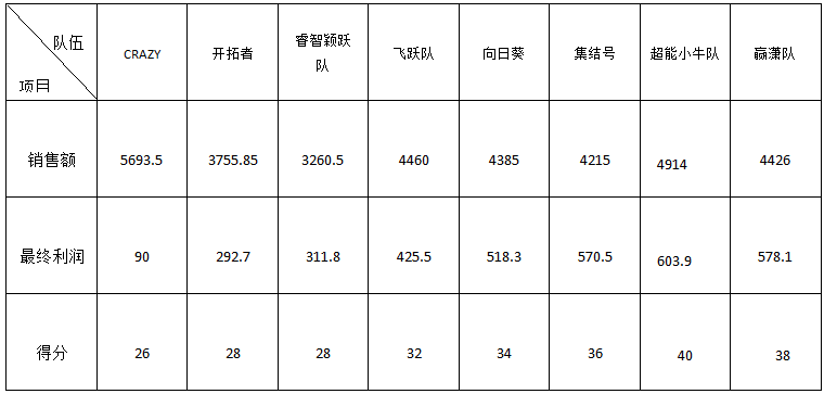 (注:CRAZY队因第二天违反比赛规则,扣除第二天销售利润。)