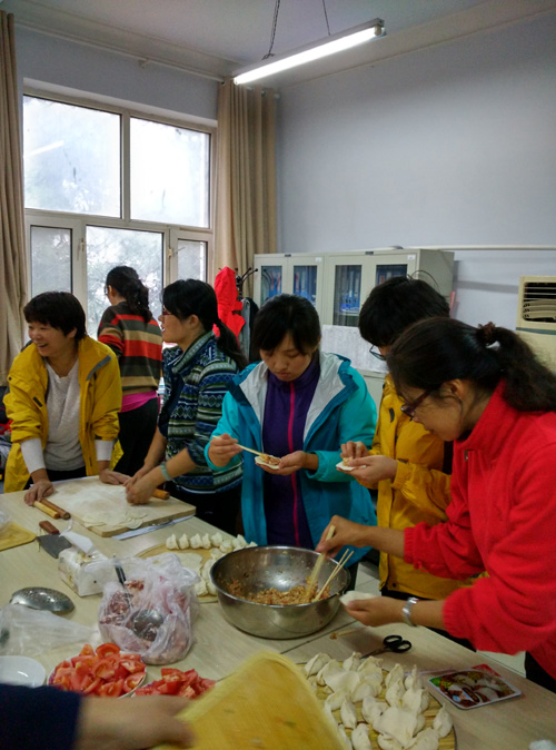 比赛期间,部分不参赛教师辛苦采购肉菜,为全体参赛教师制作了热气腾腾的饺子,进一步增进了老师们的感情。