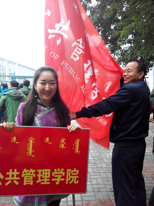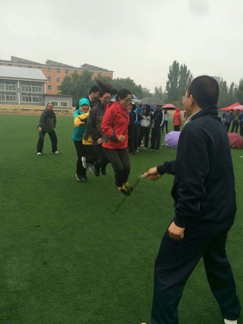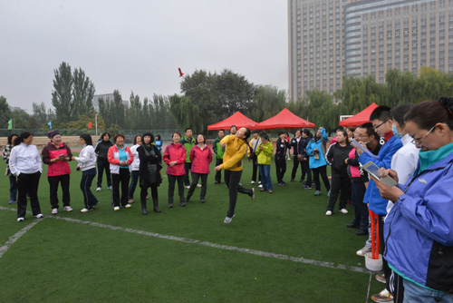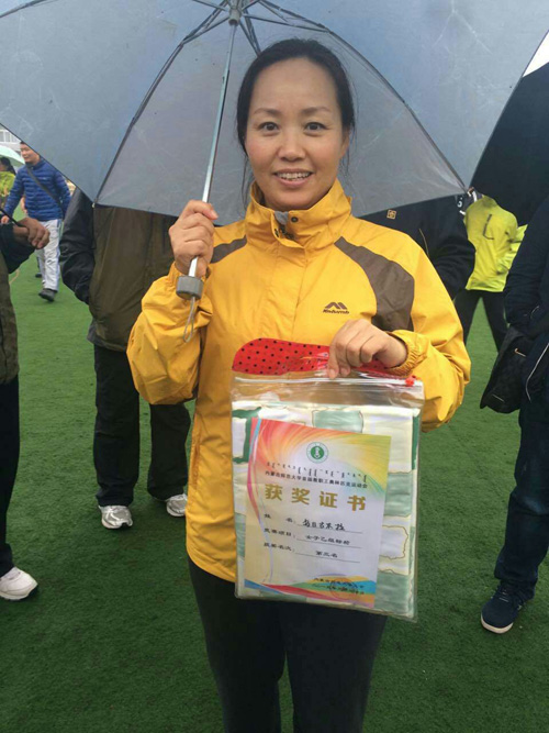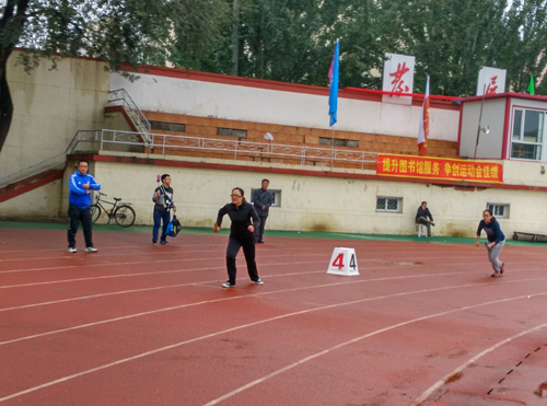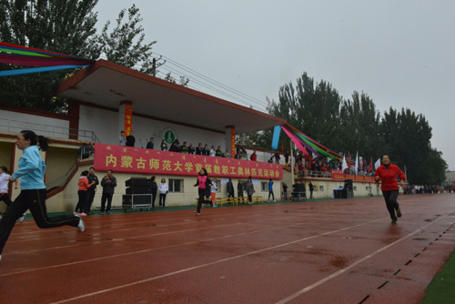 当日上午八点,各学院、部门参赛方队依次入场,在铿锵有力的运动进行曲中正式拉开帷幕,我院方队整齐的步伐赢得校领导、参赛队及观众一致赞誉,展现了良好的精神风貌。开幕式后,铅球、100米、射箭、标枪、4×100米、集体运球跑、双人背球跑、动感转轮、运球接力赛、跳远等各类比赛项目依次登场,我院参赛教师本着“健康运动,重在参与”的精神,充分发扬团队精神,奋力拼搏,与其他学院教师运动员们进行激烈角逐,赛场激动人心,博得观赛人员阵阵掌声,未参赛教师作为啦啦队卖力加油助威,极大地鼓舞了士气,激发了斗志。经过一整天的紧张比赛,在由王雪莹、乌日古木拉、杨峰、秦云四位老师参加的动感转轮比赛和由王雪莹、乌日古木拉参赛的女子乙组双人运球接力中都获得了团体较好成绩,在个人单项赛中,乌日古木拉获得女子乙组飞碟掷准第二名、女子乙组标枪第三名,金晓蕊获得女子甲组摸石头过河第四名。
