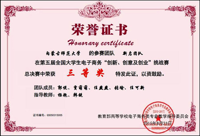 继在第五届全国大学生电子商务“创新、创意、创业”挑战赛内蒙古自治区选拔赛中取得优异成绩后,我院又在该赛事全国总决赛中获得佳绩。