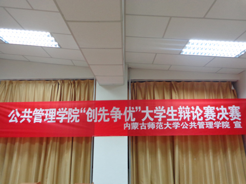 2013年12月5日晚7点,学院举办的“创优争先”系列辩论赛决赛在行知楼306教室开赛。经过初赛、复赛角逐,胜出的13级工商一班和二班两支队伍进入最后对决。